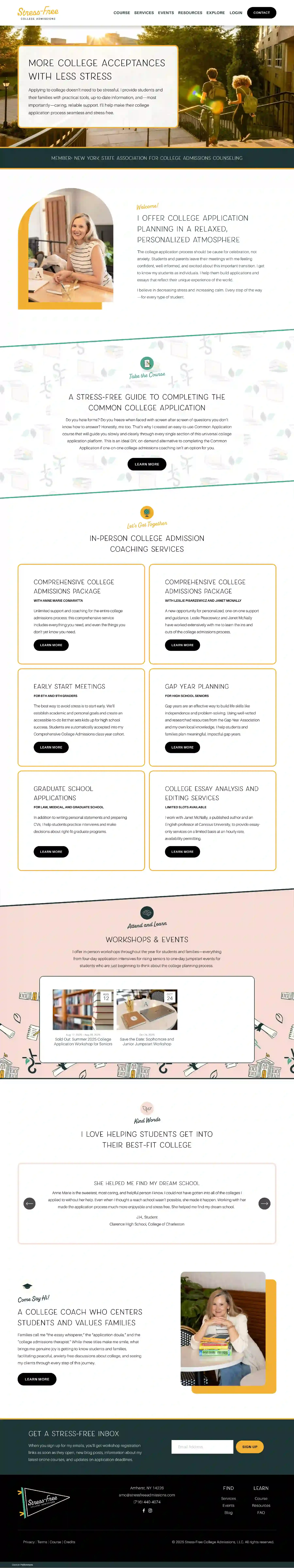 Anne Marie Comaratta is the talent behind Stress Free College Admissions, a consultancy that provides high school students and their families with practical tools, up-to-date information, and support as they go through the college application process. Her goal? To make the process seamless and—you guessed it—stress free.