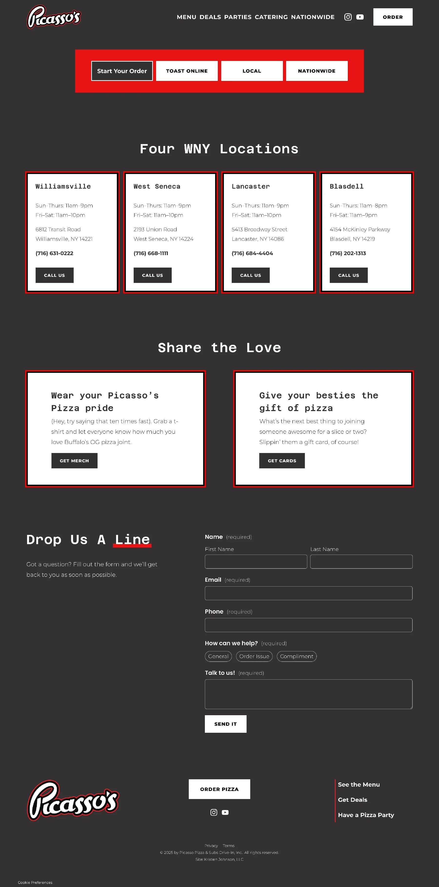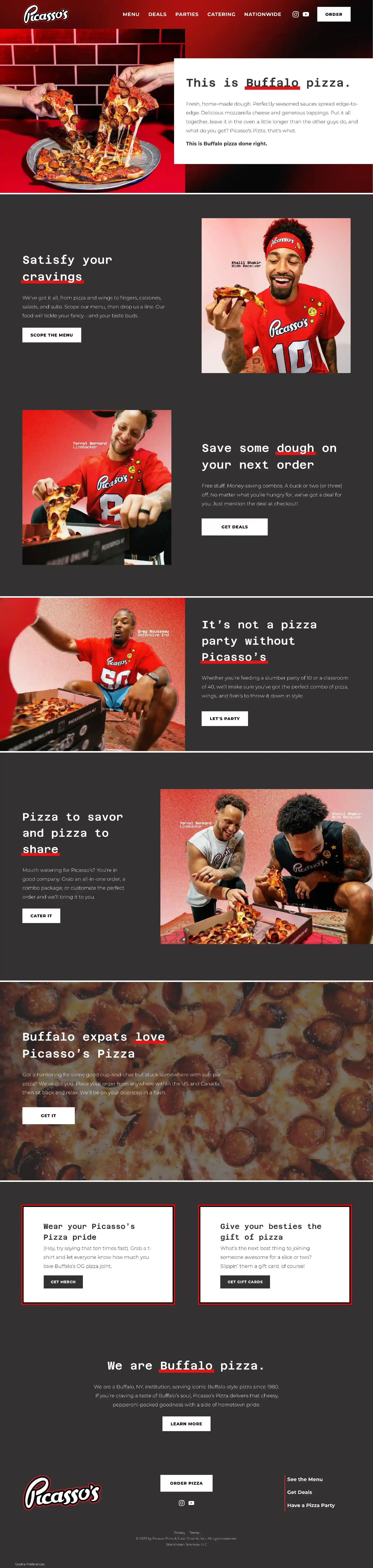 Picasso’s used Squarespace to create their original website. But not gonna lie: It was kinda hard on the eyes. They’d leaned a little too far into the bright red that’s central to the Picasso’s brand, taking the focus off the pizza.